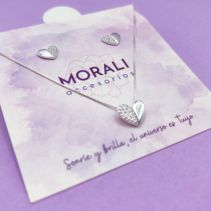 Juego Plata Corazón Mitad Microcircones