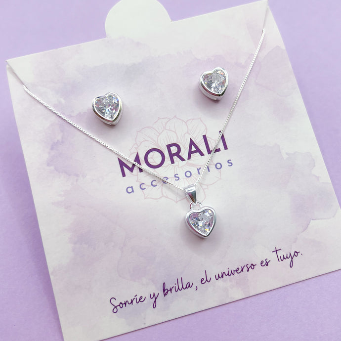 Juego Plata Corazón Circón Cristal