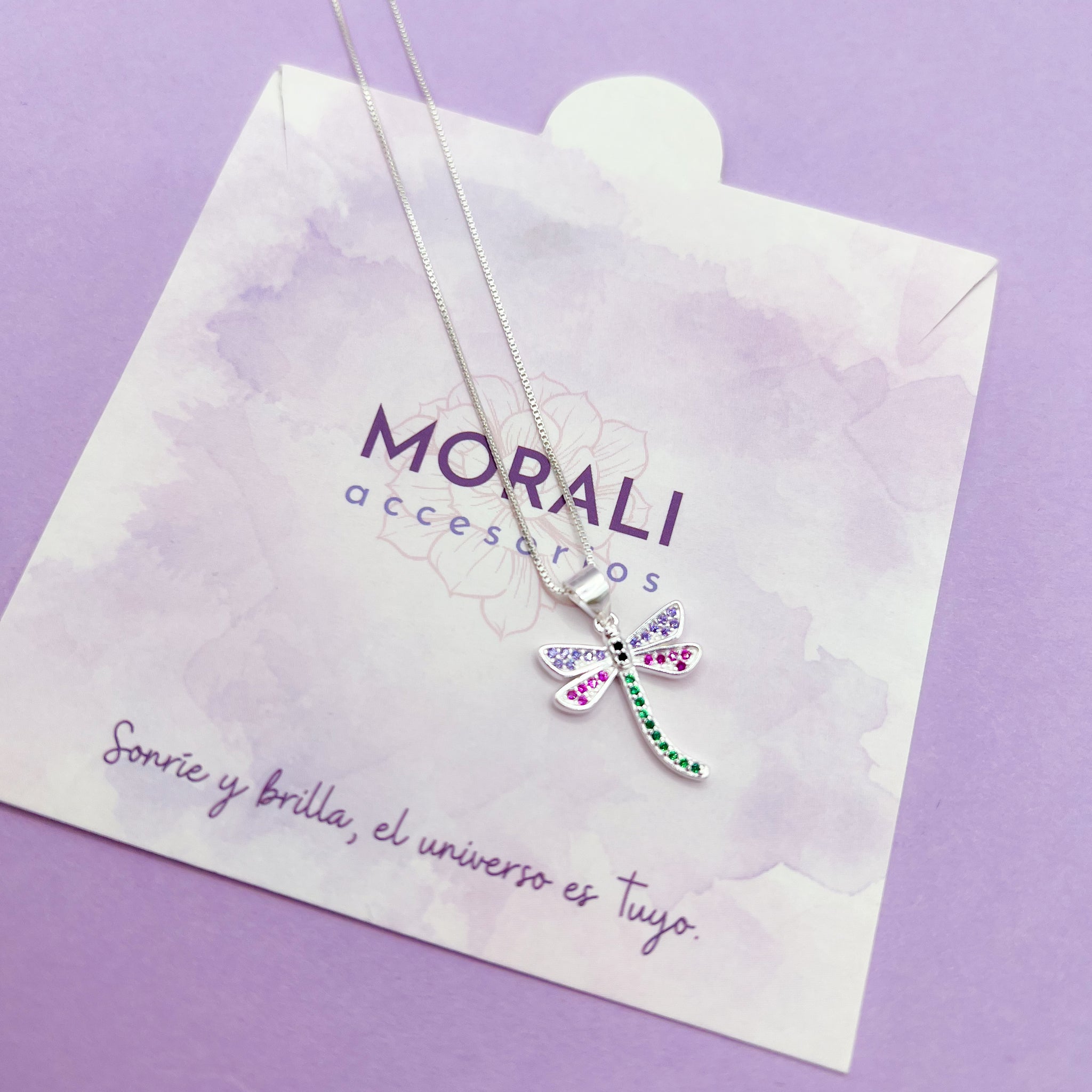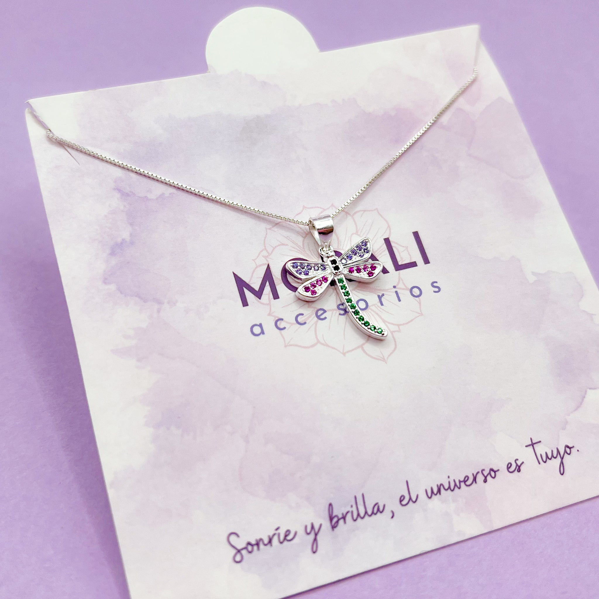 • Dije y cadena de Plata 925 y microcircones de colores.