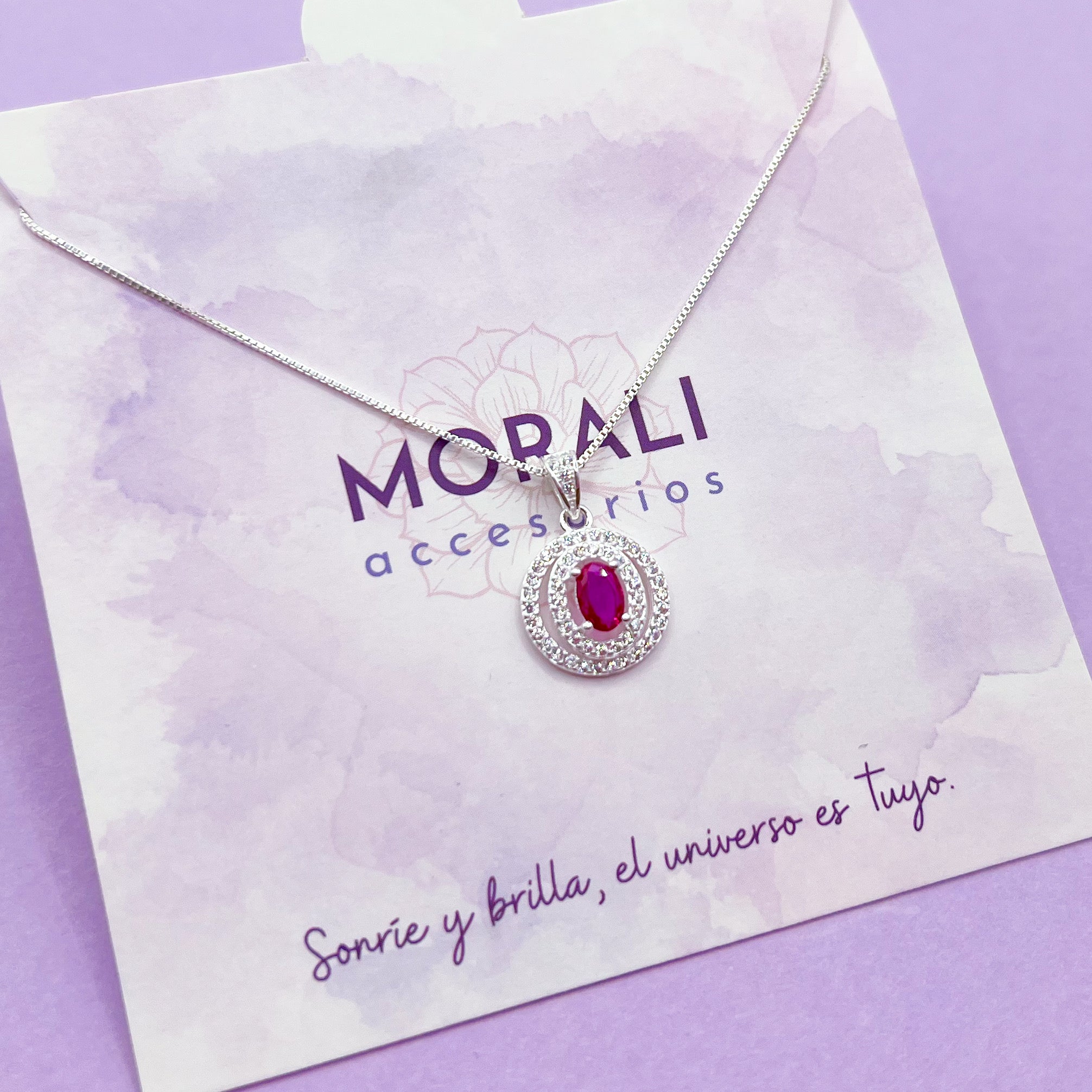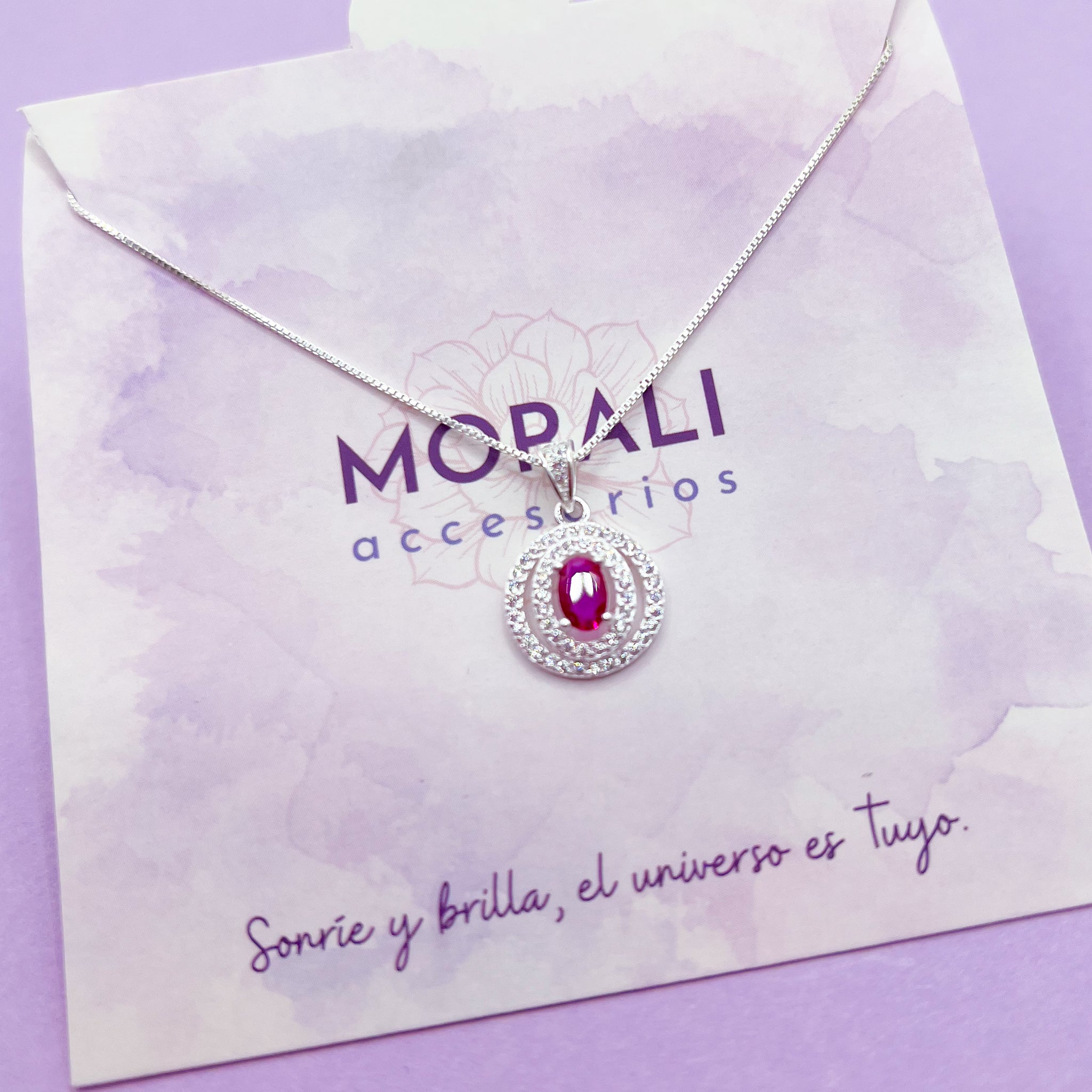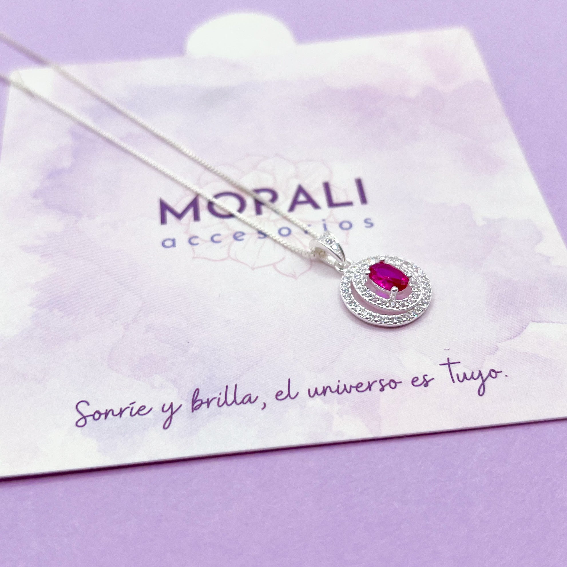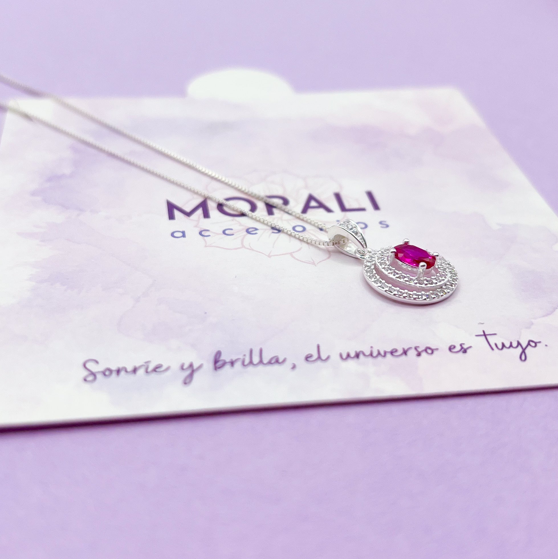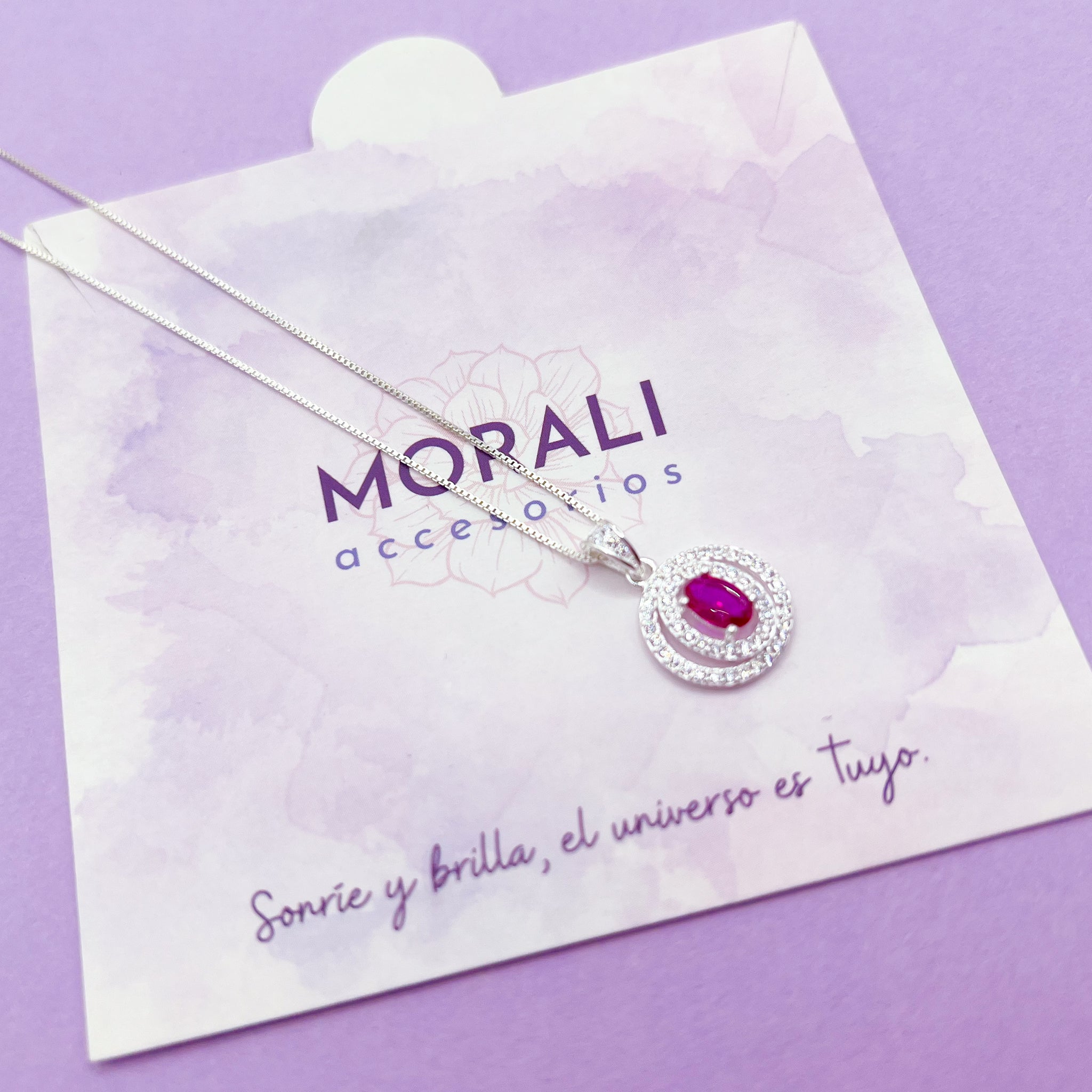 • Dije de Plata 925, circon fucsia y microcircones cristal.